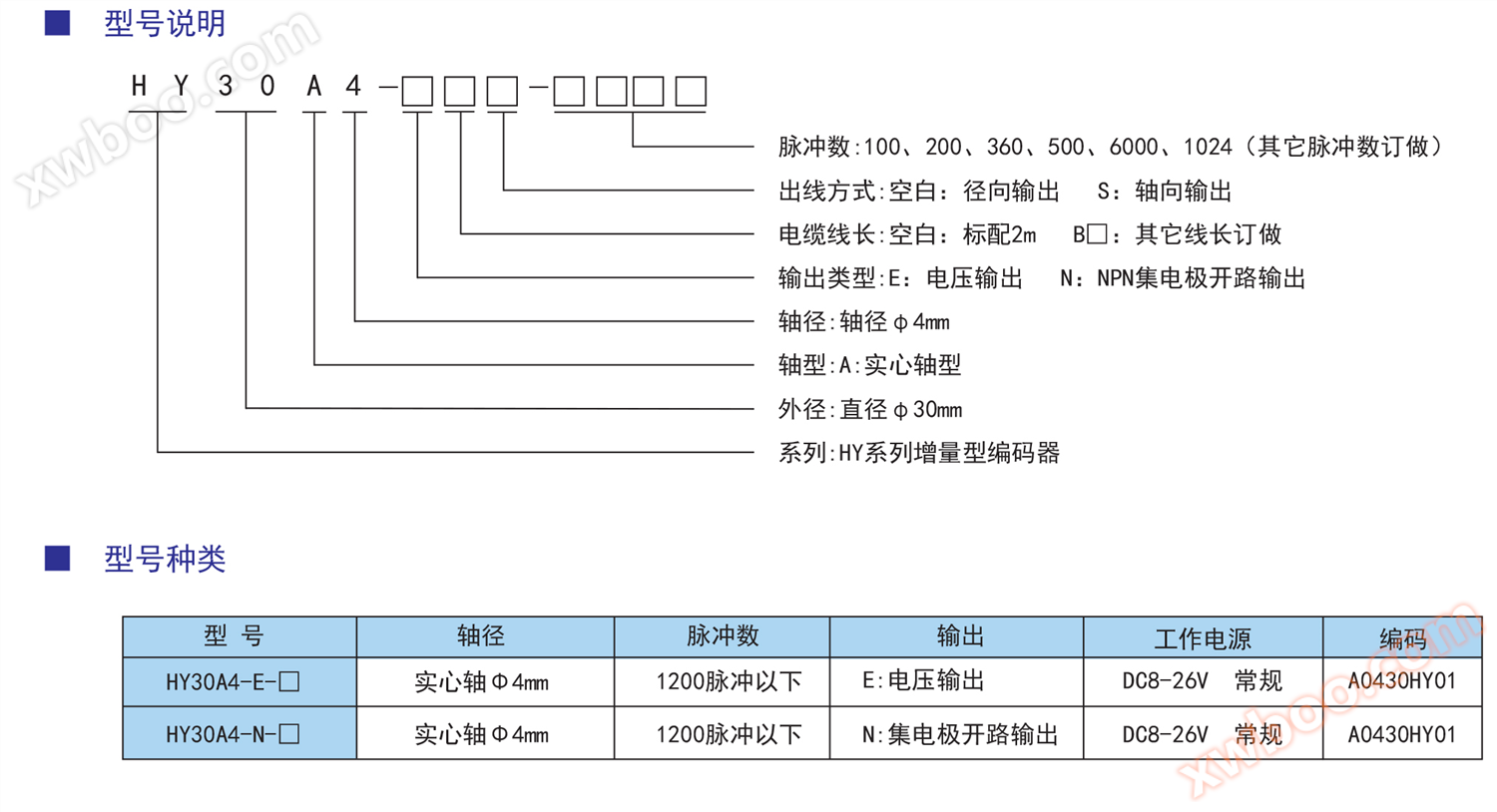Średnica zewnętrzna Φ30 końca Φ15 głowica osi wyjście w kształcie D, średnica osi Φ4x10mm, przewód boczny długość 2 m częstotliwość wyjściowa do 100 K